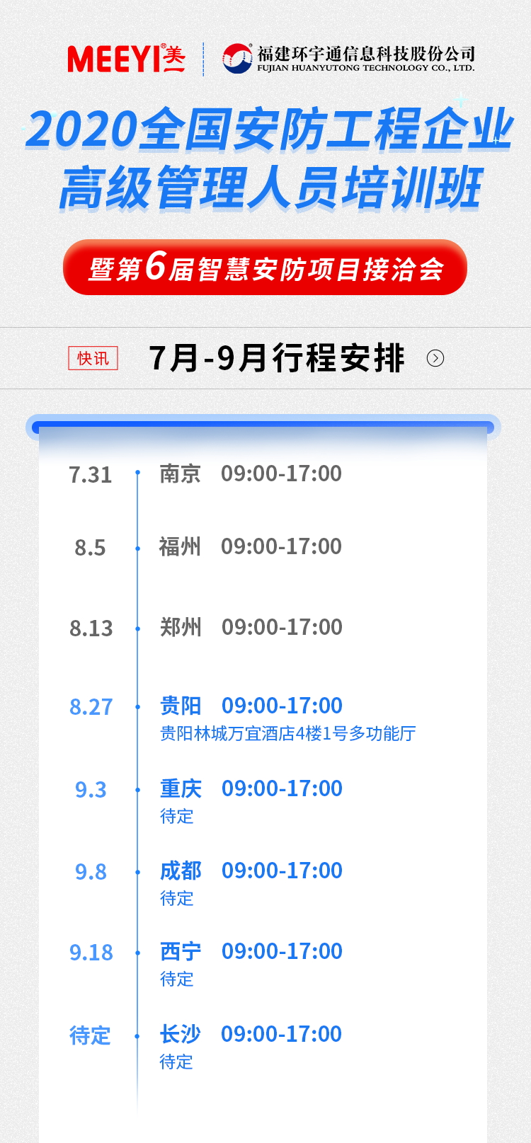 環(huán)宇通應(yīng)邀參展,于B22-1展位亮相,展出了智慧安防、智慧監(jiān)所等解決方案及相關(guān)產(chǎn)品。依托二十年來(lái)在行業(yè)內(nèi)深厚的口碑積累,吸引了眾多當(dāng)?shù)毓こ躺?、集成商親臨展會(huì)現(xiàn)場(chǎng)了解產(chǎn)品,洽談合作事宜。 2020年7月底,由環(huán)宇通聯(lián)合安防展覽網(wǎng)及各省市安防協(xié)會(huì)等舉辦的全國(guó)安防工程企業(yè)高級(jí)管理人員培訓(xùn)班(暨安防項(xiàng)目洽談會(huì)) 在江蘇南京、福建福州、河南鄭州陸續(xù)召開。本次培訓(xùn)內(nèi)容涵蓋安防工程項(xiàng)目管理、安防(智能化)集成項(xiàng)目造價(jià)等。 環(huán)宇通公司作為國(guó)內(nèi)安防行業(yè)知名廠商,將全程參與本次活動(dòng),并展出包括智慧安防、智慧醫(yī)療、物聯(lián)網(wǎng)網(wǎng)等產(chǎn)品及解決方案,贏得了與會(huì)人員和專家的肯定。